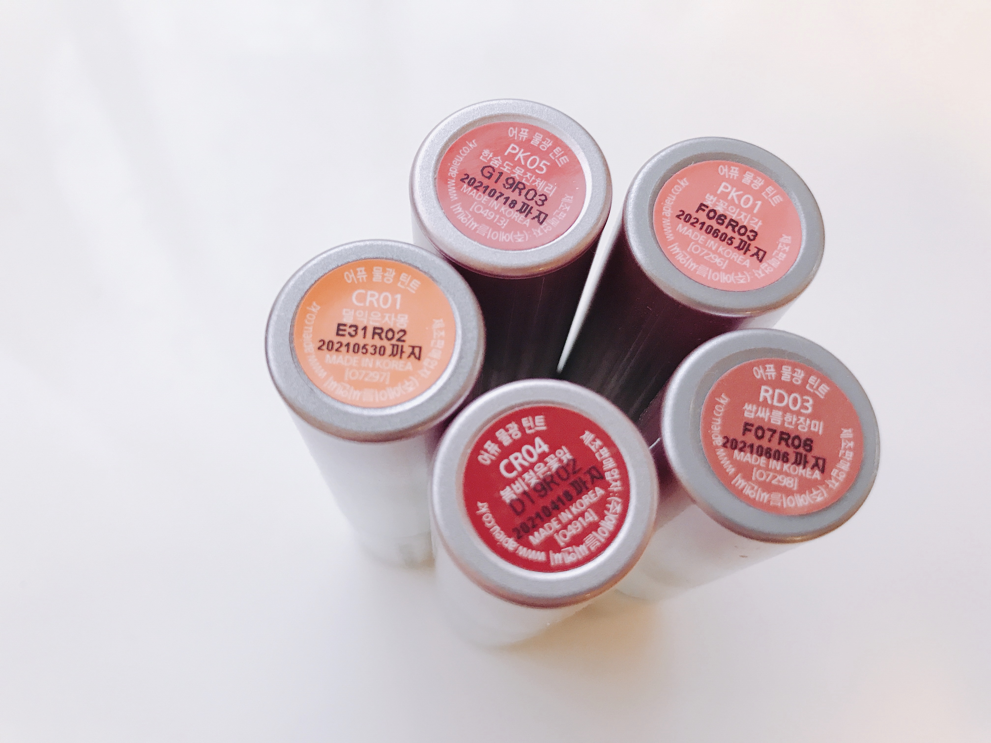 RD03とCR04は韓国で購入したカラーで、あとの3色は買い足したものです💄